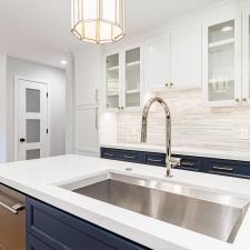 Throughout the residence, our team meticulously sanded, stained and revitalized the original hardwood floors, bringing out their natural beauty and enhancing the home's charm. In the kitchen, we installed exquisite quartz countertops complemented by undercabinet lighting, and crafted a magnificent 12-foot custom-built center island, perfect for culinary enthusiasts. The galley-style kitchen now features a stylish coffee and beverage bar, seamlessly integrated into custom-built cabinetry that surrounds an inviting fireplace. In the formal dining room, a stunning 48-inch chandelier was installed, illuminating gatherings with elegance and charm.